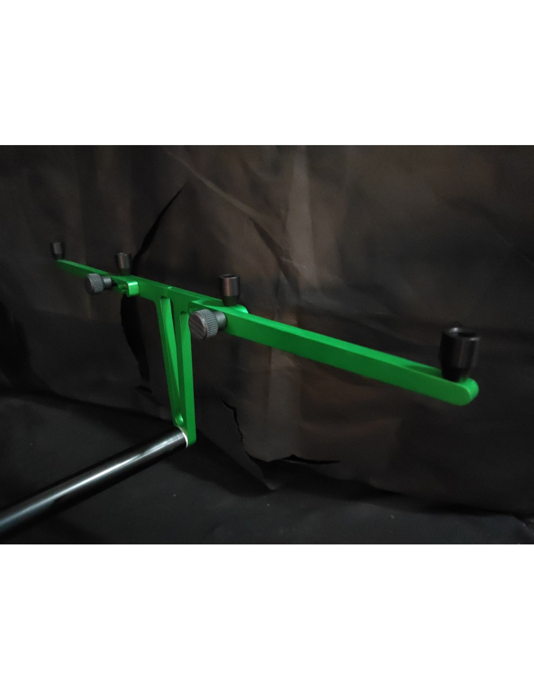 Il tubo centrale principale ha un diametro di 25 mm e varia da una lunghezza di 50 cm ad un massimo di 90cm. le leve porta segnalatori/rod rest hanno un interasse di 18cm, ed anch'essi sono realizzati in alluminio anodizzato. lo snodo centrale permette di regolare il rod pod a 360° in ogni direzione, permettendo il giusto set up in tutte le situazioni. Dotato di puntali con foro per picchetti, per ancorarlo fortemente al terreno.